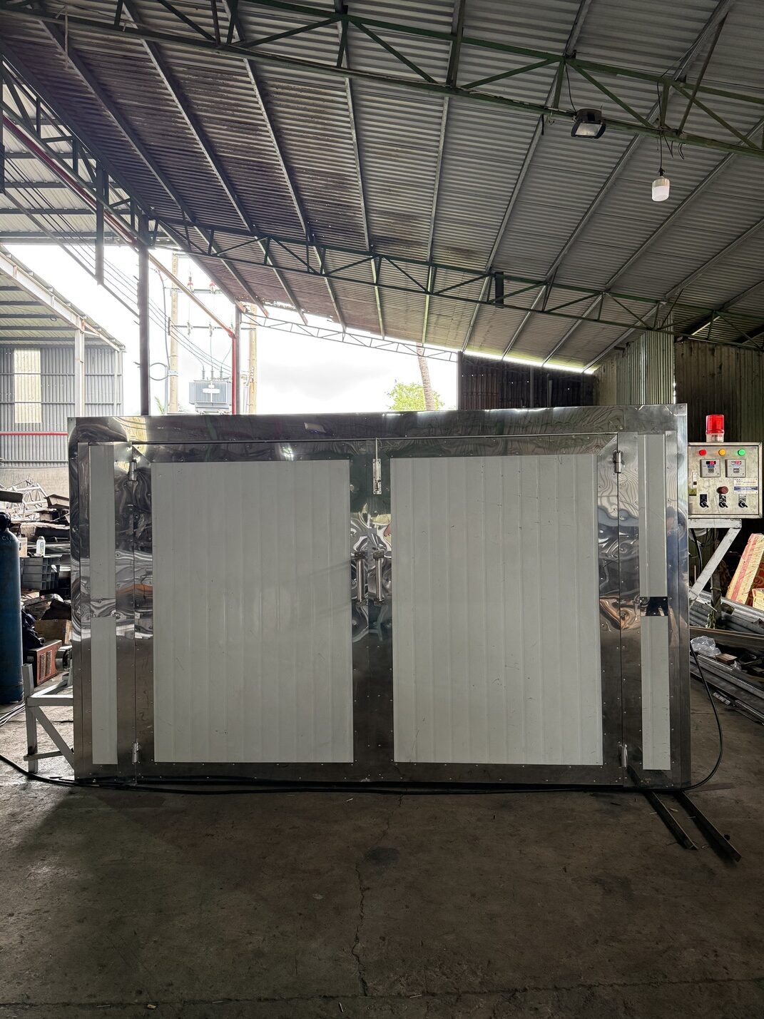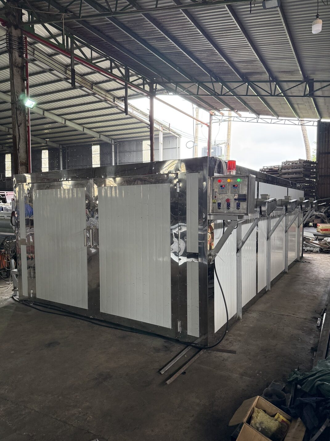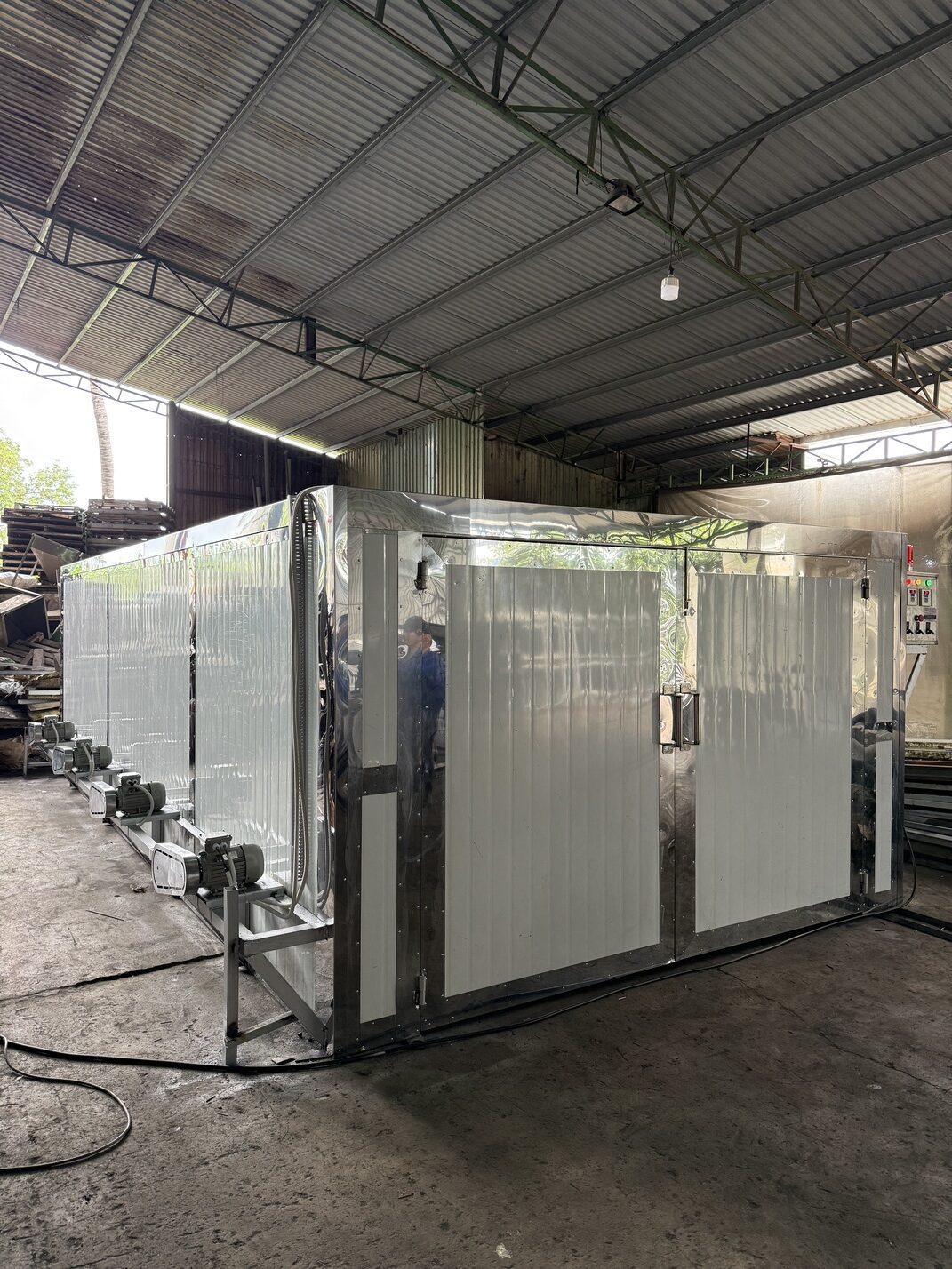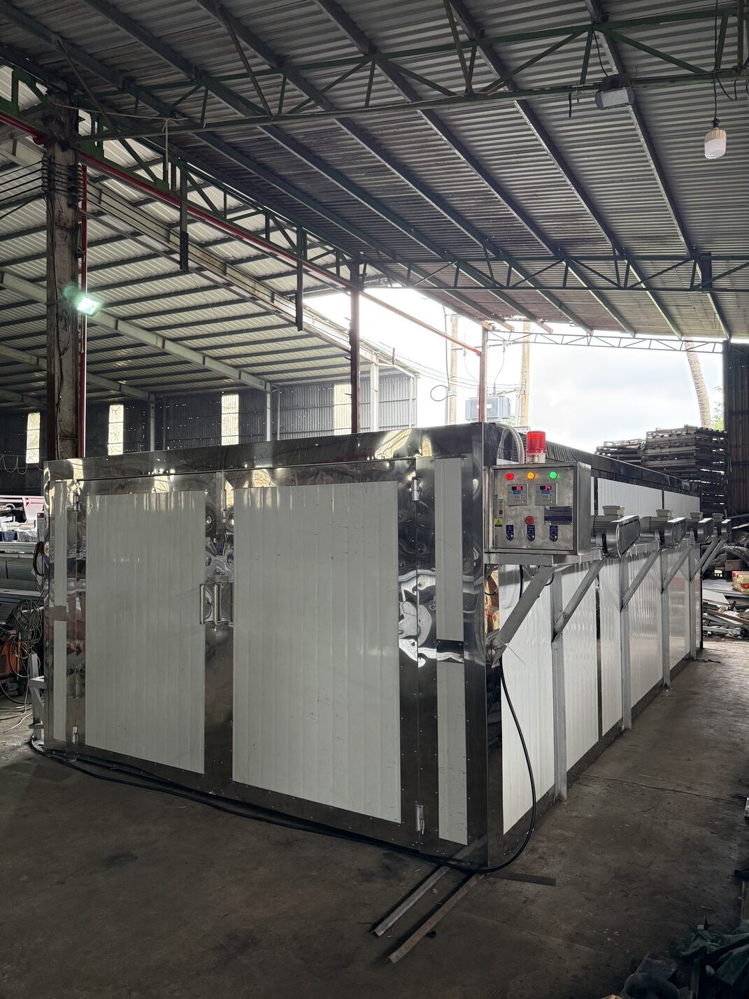 Cashew nut drying ovens are a crucial component in the modified chain, used to dry cashew nuts after shelling, reducing moisture content, stabilizing quality, and extending shelf life. With a modern design and high-pressure hot air operation, Gia Loi Long An ovens provide uniform drying efficiency and energy savings.